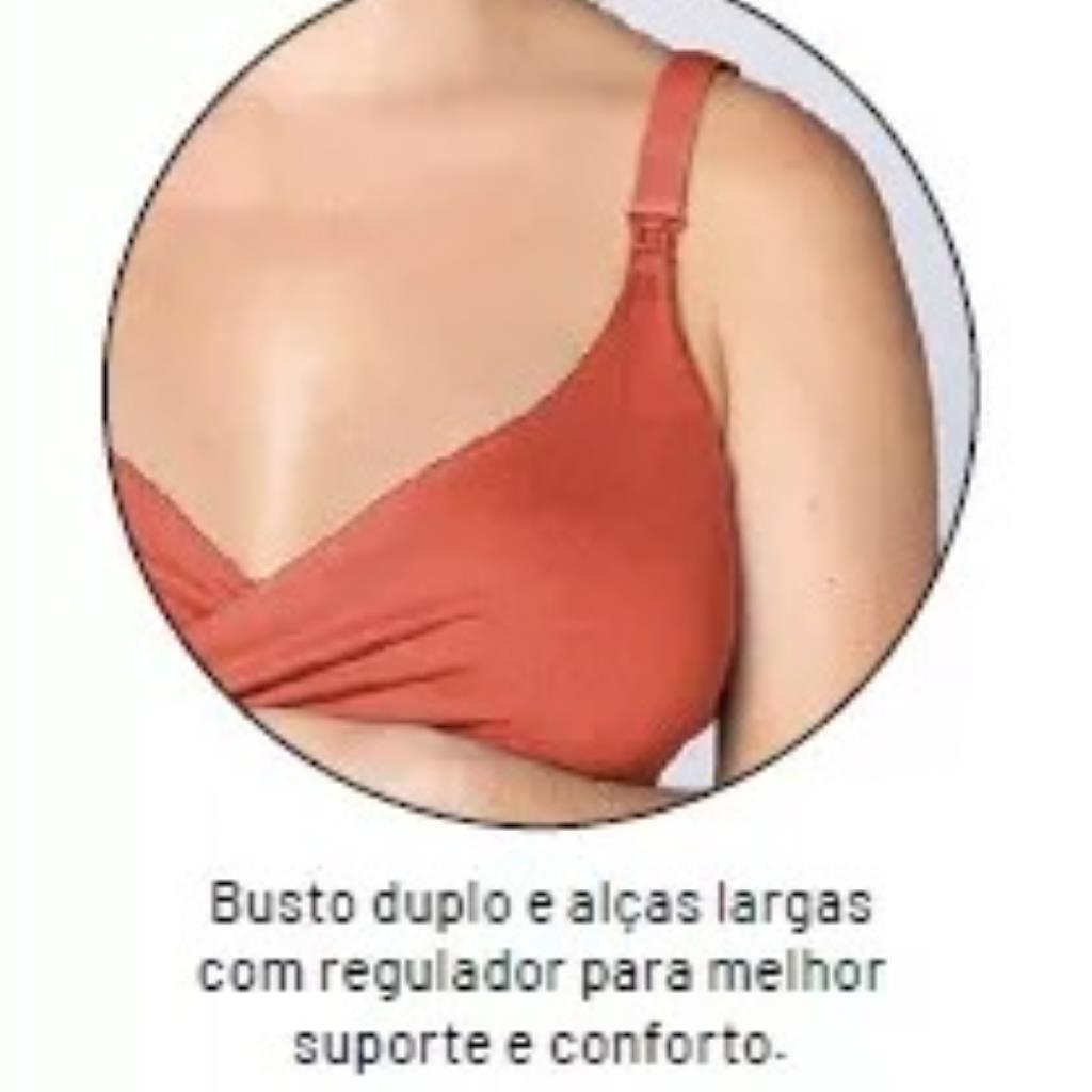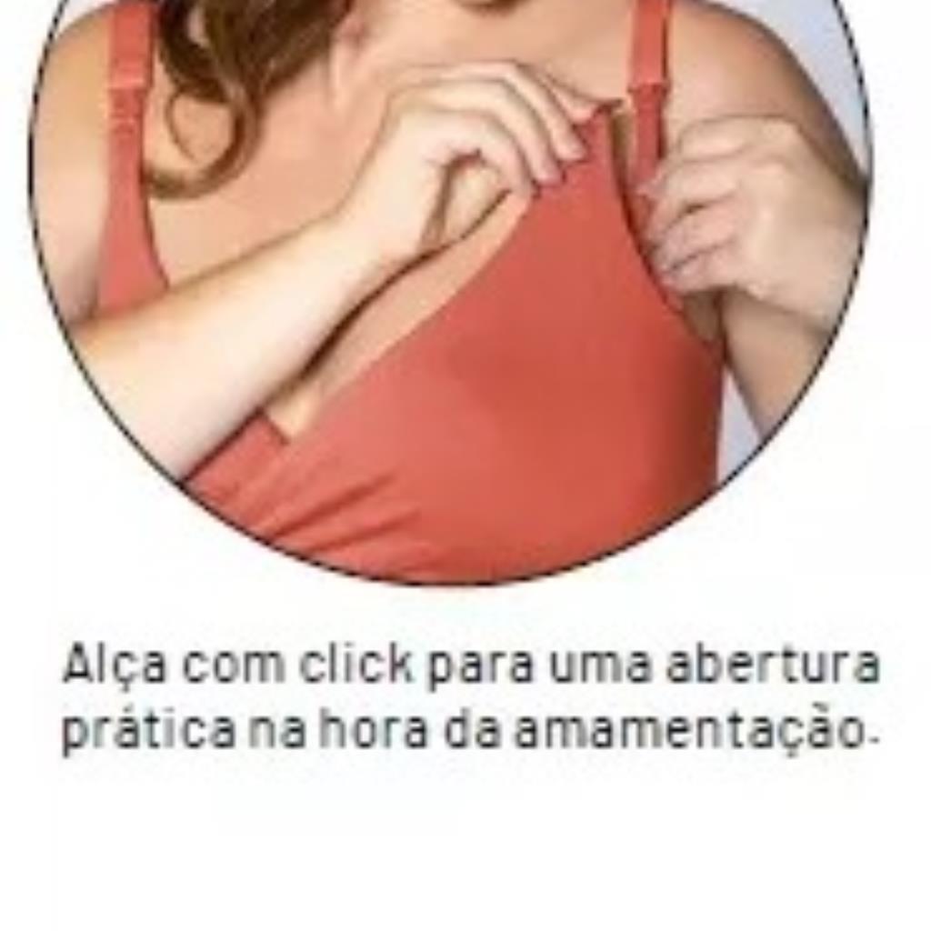 - Modelagem com busto duplo e alça larga com click próprio para facilitar a abertura na hora da amamentação.