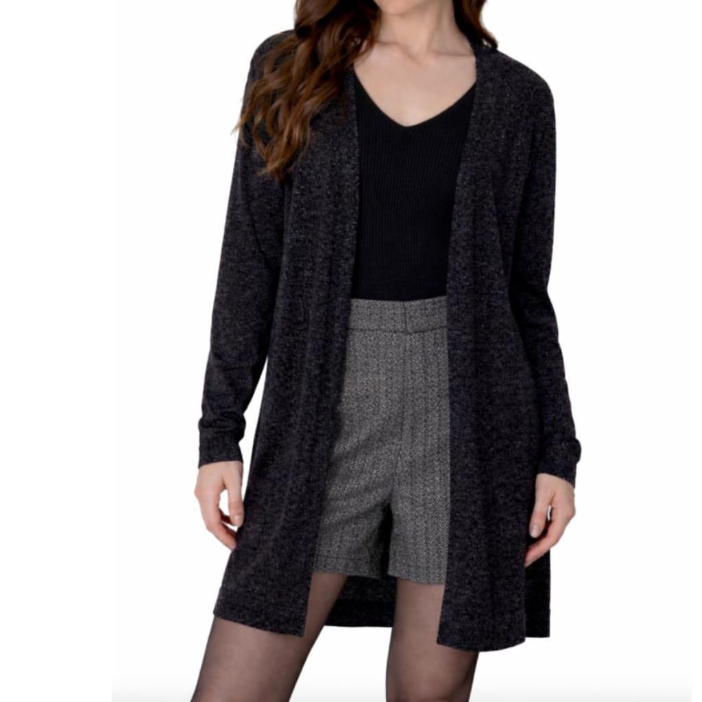 Cardigan Alongado Preto Com Brilho Tam G Enfim