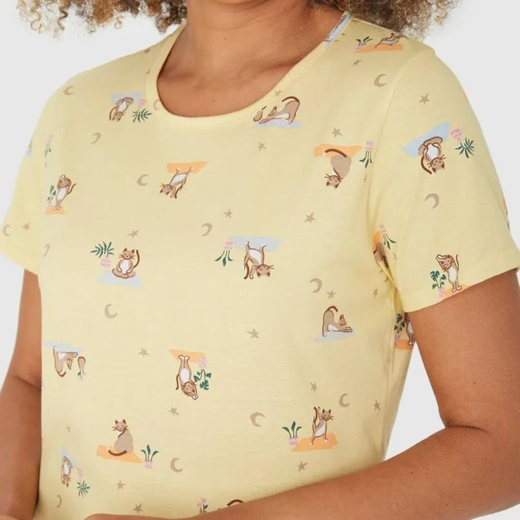 O Pijama Feminino Blusa Manga Curta Estampada Em Algodão é perfeito para proporcionar noites de sono cheias de conforto e estilo. Feito em meia malha de algodão, este pijama une praticidade e elegância, garantindo uma sensação de bem-estar e descanso renovador.