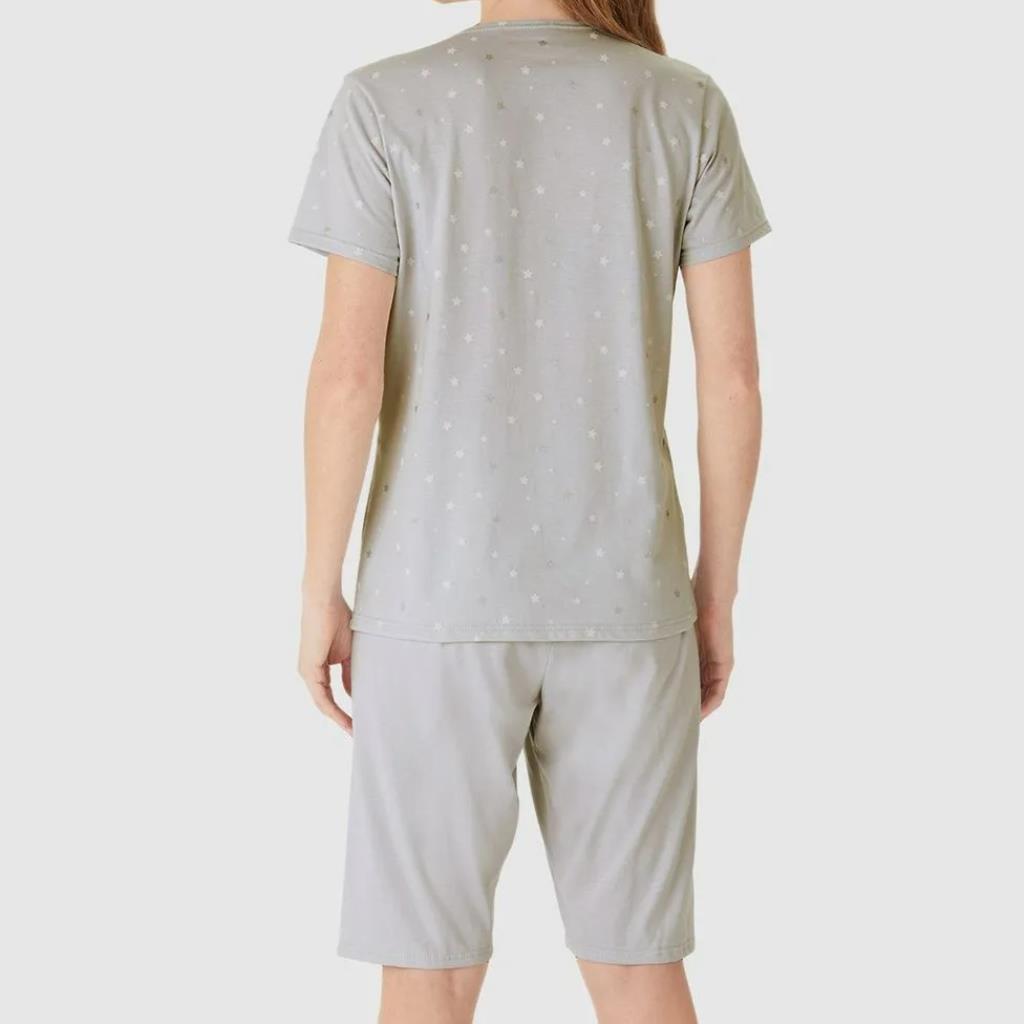 O Pijama Curto Feminino Bermuda Ciclista Em Malha Algodão é perfeito para garantir conforto e bem-estar nas noites de verão. Feito em meia malha 100% algodão, oferece toque macio e respirabilidade, ideal para relaxar e dormir com tranquilidade.